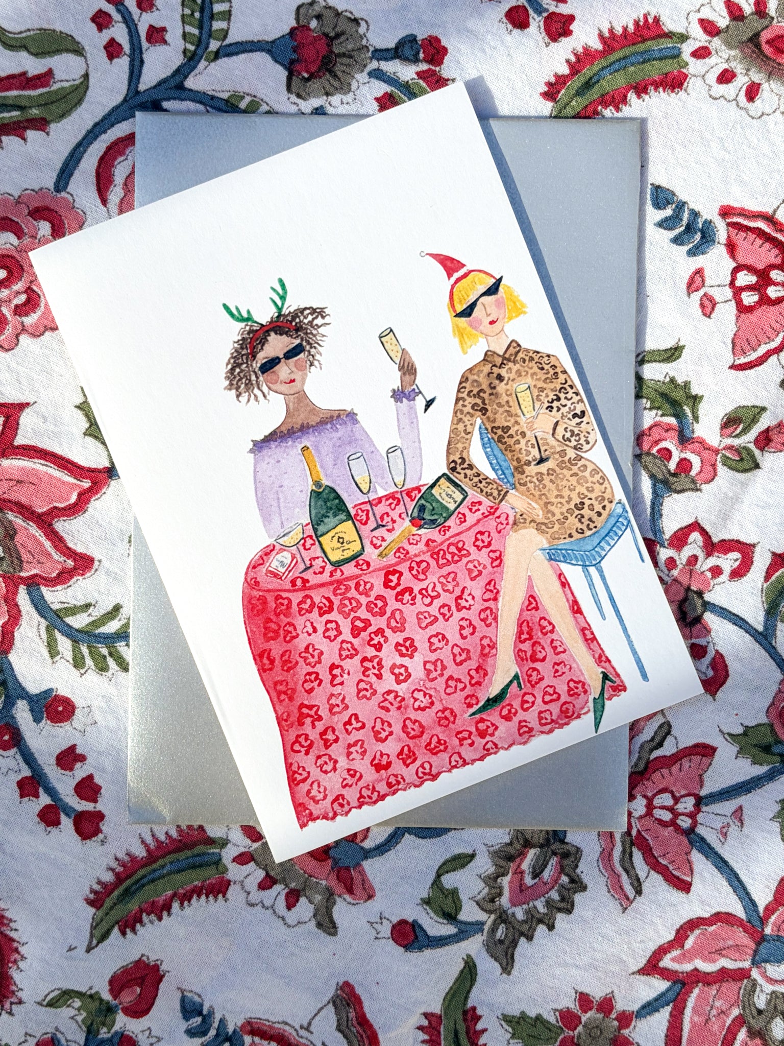 Individual card that opens flat printed on quality 100% recycled paper paired with a silver envelope (blank inside).